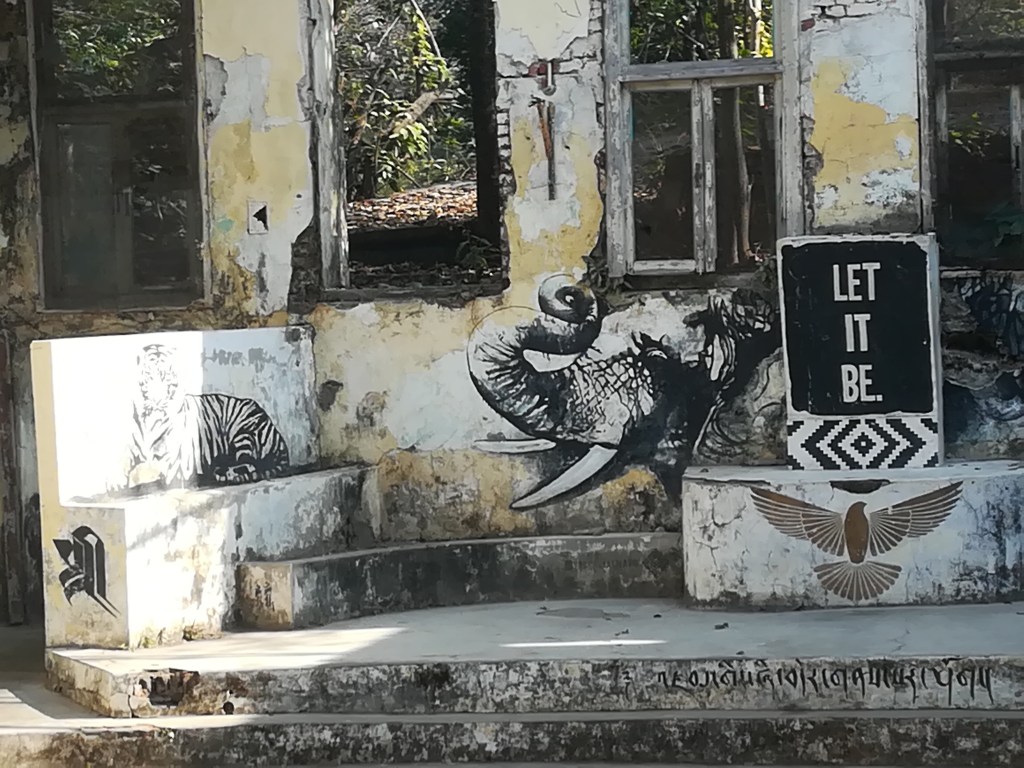 Die Beatles hatten ursprünglich mehrere Monate in Rishikesh bleiben wollen. McCartney reiste nach vier Wochen ab, Harrison und Lennon zwei Wochen später. Ich glaube, ich könnte es an diesem Ort ziemlich lange aushalten. Auf dem Heimweg fällt mir an einer Mauer ein Wandbild auf, das die Beatles zeigt. Ist das ein Zeichen? Kommen wir uns näher?