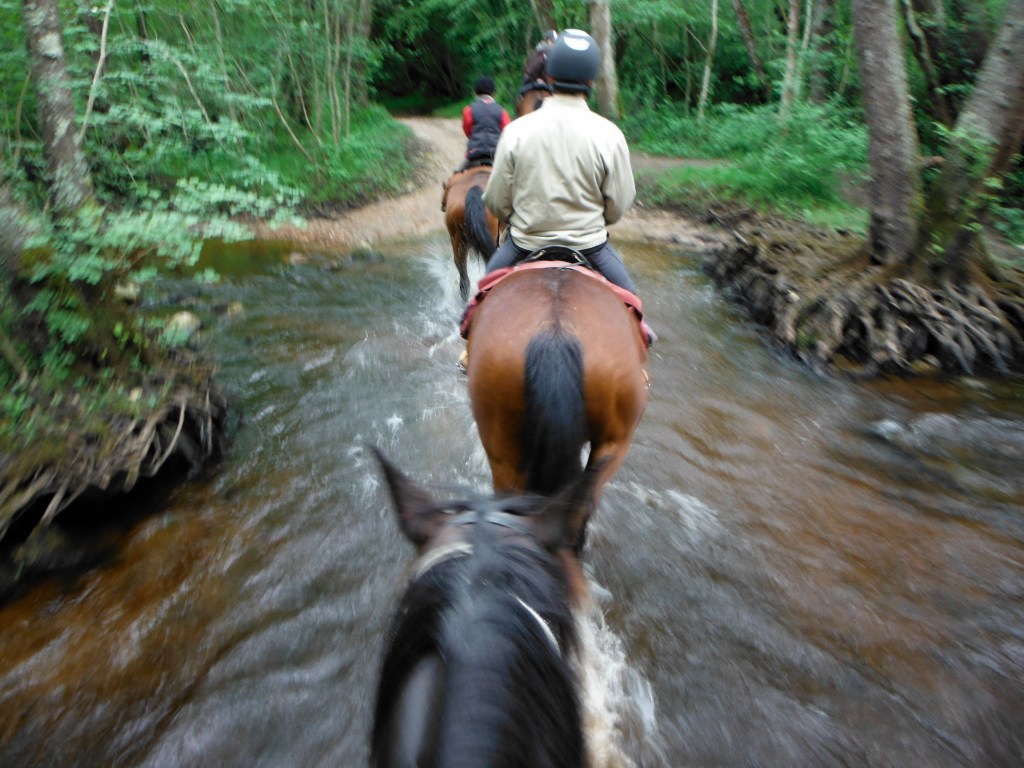 Beide Schweizerinnen reiten sehr gut, aber leider auf eine Art, die unsere Pferde nicht kennen. Diese französischen Warmblüter und Anglo-Araber sind aufs Wanderreiten trainiert. Also sind sie es gewohnt, am langen Zügel zu gehen und den Kopf hängen zu lassen und nur mit wenig Beinhilfe und Gewichtsverlagerung dirigiert zu werden. Unterm Strich wissen die eh viel besser als wir, wo es langgeht. Die Schweizerinnen wollen ihre Pferde so reiten wie zu Hause, eng am Zügel, den Kopf schön hoch, den Hals erhaben gebogen. Das sehen die Tiere aber nicht ein, sich in ihre Arbeit reinquatschen zu lassen, und so hat die Schweiz ein bisschen Stress, bis man sich auf einen Kompromiss einigt.