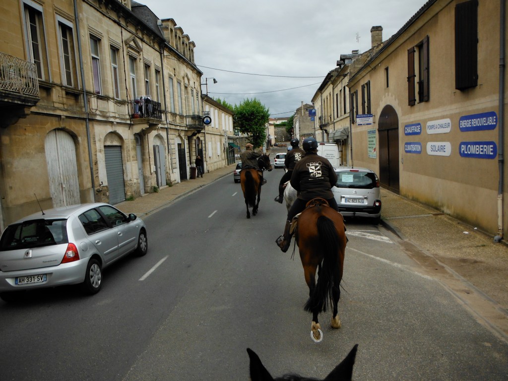 So arbeiten wir uns in Tagesetappen von 30, 35 Kilometern entgegen dem Uhrzeigersinn in einem Halbkreis um Bordeaux herum: überqueren die Garonne, ziehen durch Entre-deux-mers, kreuzen die Dordogne, das Libournais, die Côtes de Bourg und reiten zum Schluss rüber ins Médoc. Am Ende werden wir bis auf Graves im Südwesten alle Hauptgebiete des Bordeaux durchritten haben. Meistens geht es querfeldein, manchmal durch kleine Städtchen, es fühlt sich an wie ein ewig träger Sonntagnachmittag.