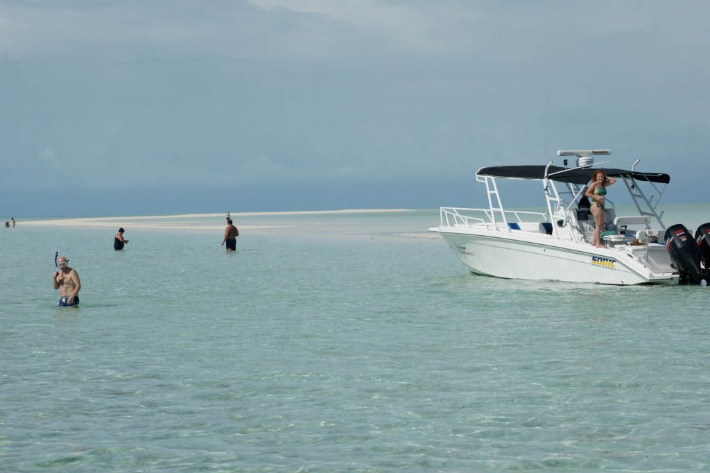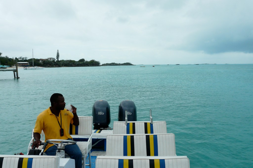Dann kommt endlich Pat. Wie er sein Boot vom Autoanhänger zu Wasser lässt und es mit ein paar Handgriffen startklar macht, das wirkt schon sehr professionell. Die Bestimmtheit seiner Bewegungen hat bei aller Lässigkeit nicht dieses extrem Energieschonende, das sie in anderen Inselreichen so gern betonen. Vielleicht liegt das ja daran, dass die Bahamas, nördlich von Kuba und östlich von Florida, im Atlantik liegen und zumindest geografisch nicht mehr wirklich in der Karibik.