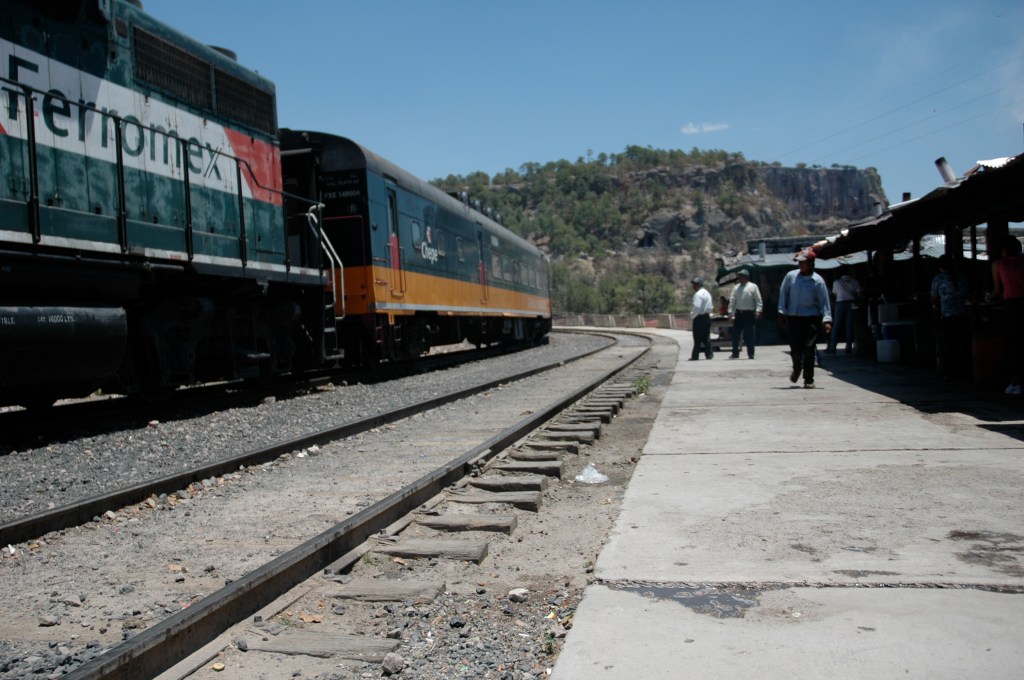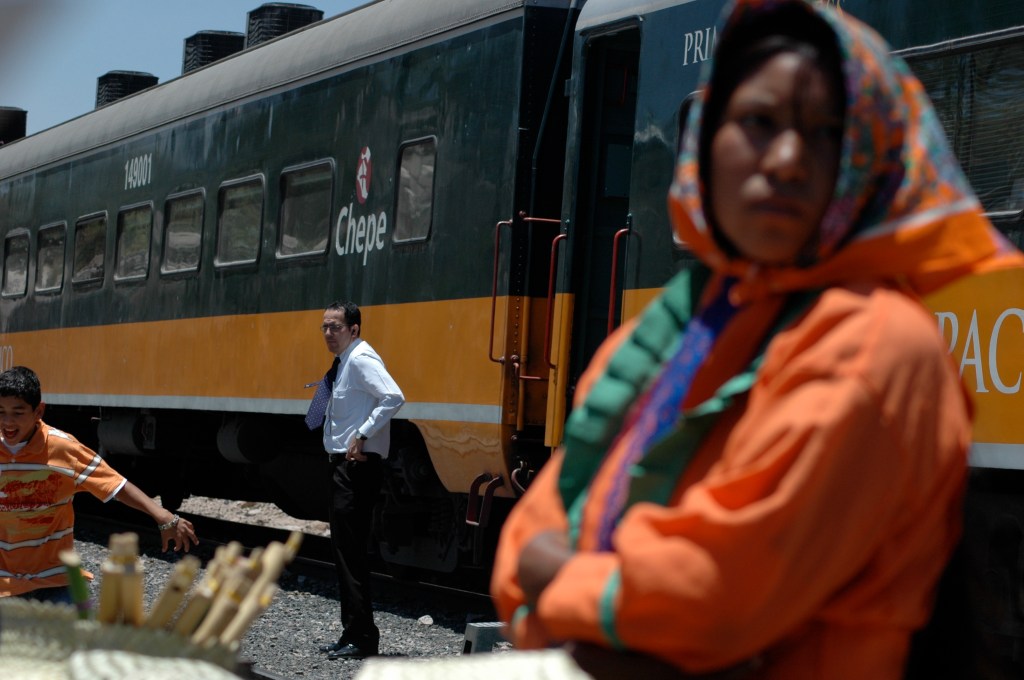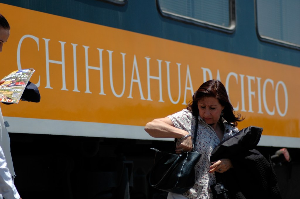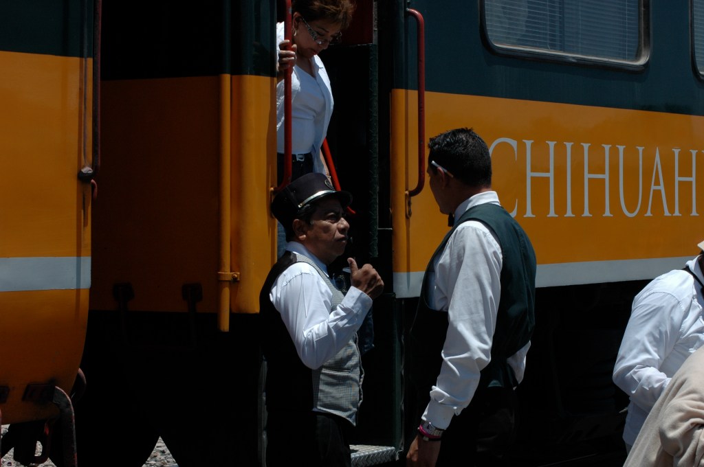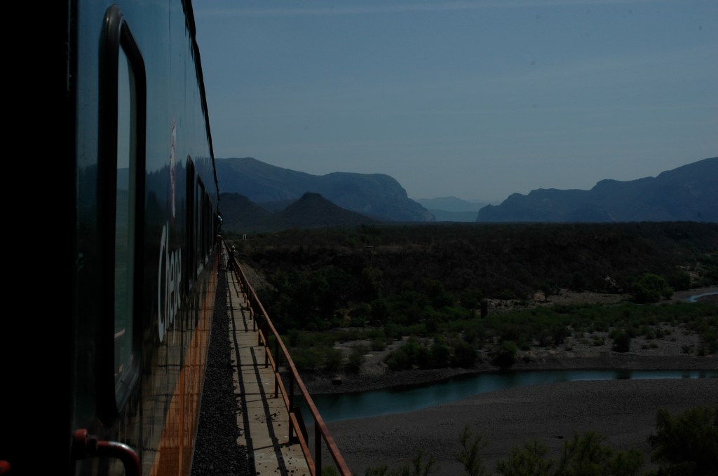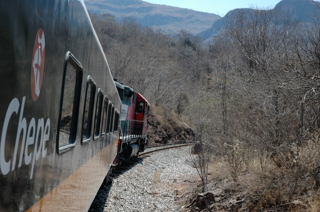In der Ferne taucht nun der Zug aus Los Mochis auf. Für die 650 Kilometer von hier bis Chihuahua wird er 16 Stunden brauchen. Die Fahrt ist aus gleich zwei Gründen besonders: Erstens gibt es in Mexiko überhaupt nur auf zwei Eisenbahnstrecken Personenverkehr. Zweitens soll dies eine der zehn schönsten Zugreisen der Welt sein. Sie führt durch die Sierra Madre Occidental, durch den Gebirgszug der westlichen Sierra Madre. Und in deren Zentrum liegen die Barrancas del Cobre, eines der größten Schluchtensysteme Nordamerikas. Bis dahin sind es nur ein paar Stationen. Die klimatisierten Abteile werden meinem Strohhut gut tun. Mir auch. Darum gibt es diesen Passagierzug, den Ferrocaril Chihuahua Pacifico oder kurz Chepe, ja auch in zwei Klassen. Für uns Touristen gut gekühlt und schnell, denn der primera express hält nur an neun ausgewählten Stationen. Grob eine Stunde später fährt der clase económica durch, der Zug der zweiten Klasse. Der stoppt an fast jeder Milchkanne, und an Bord gibt es echtes mexikanisches Essen. Im Speisewagen der primera geht man auf Nummer Sicher. Das ist wichtig, denn Mexiko macht vielen Menschen Angst, und die mitfühlende Erkundigung nach darmfloralen Problemen gehört zur gepflegten Kennenlernkonversation.
