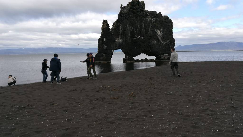 Am Ufer direkt vorm Felsen gibt eine Gruppe Chinesen Kameravollgas und brüllt sich Posieranweisungen zu. Zuerst denke ich, warum so laut, Leute. Aber die freuen sich so überschwänglich über den Felsen und nicken mir grinsend zu, hoch die Daumen, dass ich meine Strenge fahren lasse. Ich setze mich in den schwarzen Sand, schaue auf die Chinesen, auf die Seehunde im Fjord, auf diesen merkwürdigen Felsen und fühle mich dermaßen kontemplativ, mir fällt noch nicht einmal mehr ein aufregenderes Wort dafür ein.