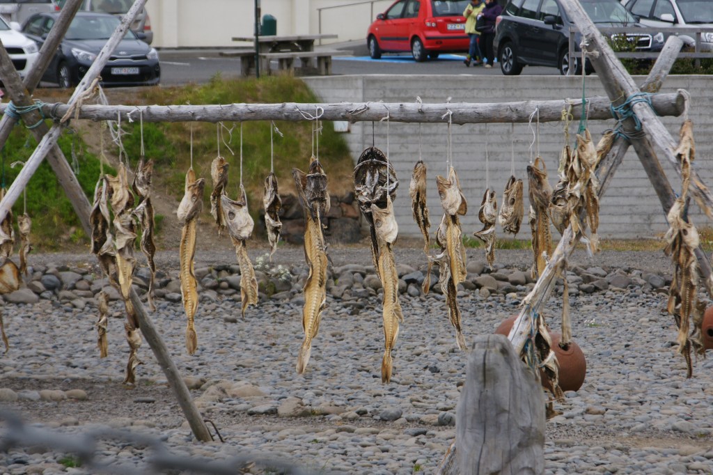Über die nächsten Stunden fahre ich und halte an, koche Kaffee, schaue herum, fahre weiter und sehe nur wenige Menschen. Das Karge, Leere beginnt sich wohlig in mir breitzumachen als entspannende Gedankenlosigkeit. Auf der östlichen Seite der Halbinsel biege ich einmal von der Piste ab, um mir eine Klippe näher anzusehen, und kreische beinahe vor Schreck: Ein Dutzend Autos und ein Reisebus stehen auf einem Parkplatz. Kurz überlege ich, kehrtzumachen vor diesen Horden. Und dann ist es wie oft: Wo viele hinwollen, ist es oft wirklich hübsch. Unten im Wasser steht ein einsamer Felsen, 15 Meter hoch, verwittert. Der Legende nach ein Troll, der versteinert wurde. Weil aber die vielen Vögel, die auf ihm nisten, auch viel auf ihn kacken, heißt er nicht Versteinerter Troll, sondern Weißer Kittel.