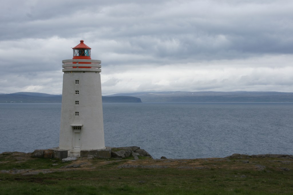Hvammstangi hat knapp 600 Einwohner, einen Supermarkt, eine Tankstelle, eine Apotheke, eine Post, ein Gesundheits- und ein Seehundzentrum. Es ist nicht sein urbanes Glitzern, was den Ort zum Startpunkt des Arctic Coast Way macht. Er liegt schlicht am südwestlichen Ende von Vatnsnes, der ersten Halbinsel auf der West-Ost-Route. Auf schmaler Rollsplittpiste knirscht mein Auto an der Küste entlang nach Norden. Ich sehe Schafe, wenige Bauernhöfe, kaum andere Wagen. Auf einer Grasfläche unterhalb der Straße, direkt am Strand, steht ein alter hölzerner Pferch, kreisrund und unterteilt wie ein riesiges Kutschenrad, zum Schafesortieren. Hier bleibe ich ein paar Minuten, und zwei weitere Mietwagen halten, Leute steigen aus und fotografieren. Wir beachten uns betont nicht, als wollte so jeder für sich glauben können, der einzige Besucher hier zu sein. Ein Stückchen weiter halte ich, weil ich die orangefarbene Kuppel eines Leuchtturms so pittoresk finde. Weit im Westen über die riesige Húnaflói-Bucht hinweg sind auf dem Meer Konturen auszumachen, eine Ahnung von Land. Wäre ich Seefahrer: eine Hoffnung.